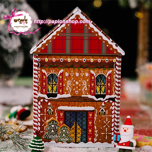 جعبه فلزی کریسمسی برجسته کلبه بیسکوییتی زنجبیلی میتونه آشپزخانه و اتاق شما رو زیبایی خاصی ببخشد