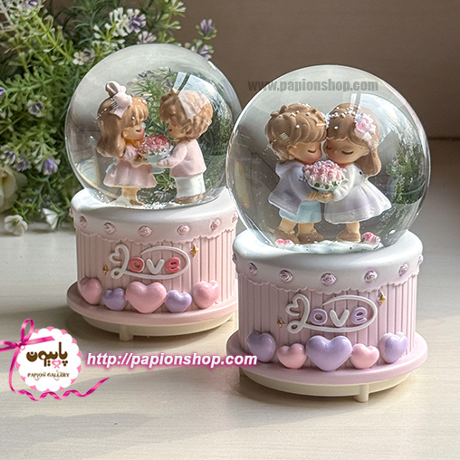 گوی فول موزیکال و چراغدار عاشقانه دختر و پسر گل در دست را میتوانید با مجسمه های عاشقانه پاپیون شاپ ست کنید